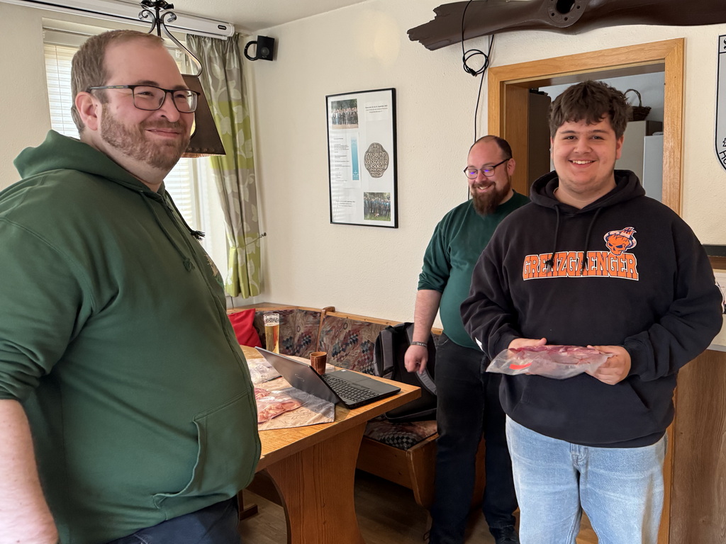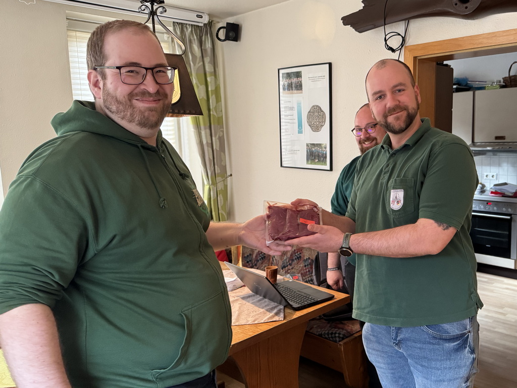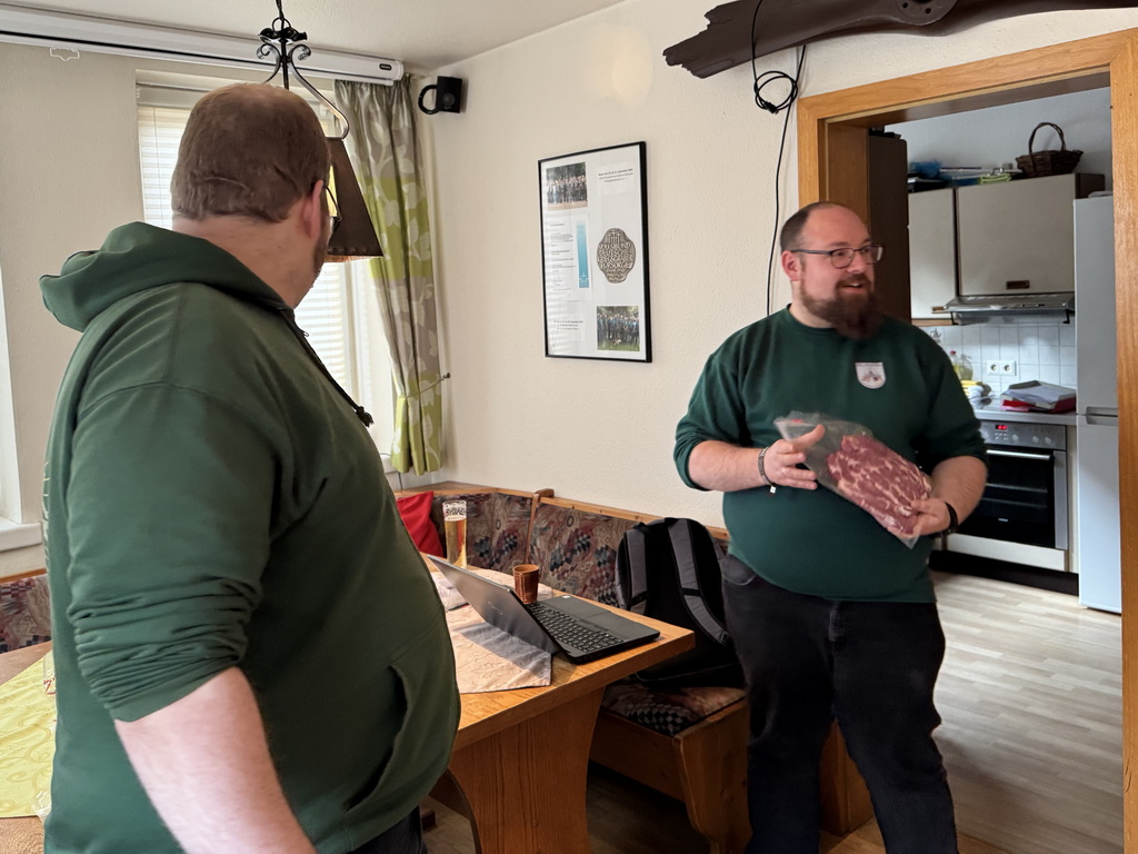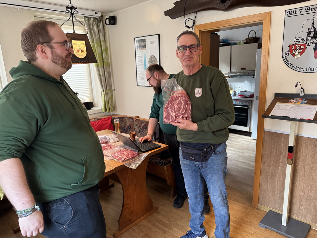| ... und die Mettwürste werden ausgegeben, nur einer hat es geschafft, zwei zu schießen, Volker Müller |
